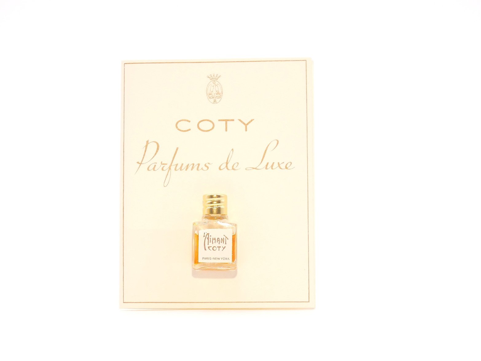 Le flacon est collé sur une carte publicitaire blanc ivoire, sérigraphie marron.