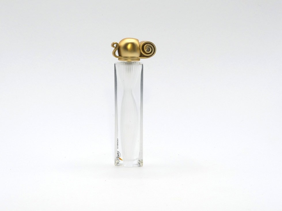 Flacon verre transparent élancé – silhouette féminine sculptée dans le verre, sérigraphie noire 1LV.