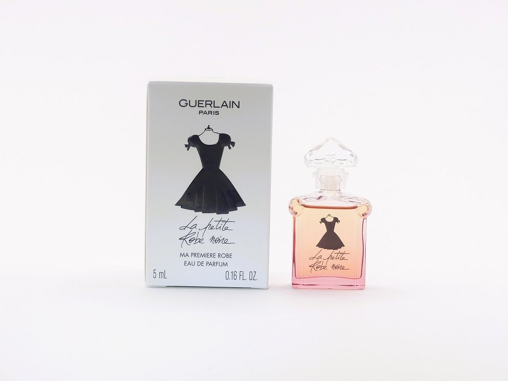 Flacon verre transparent & teinté rose dégardé découpe volute – sérigraphie noire 2 lignes horizontales & décor robe noire avec mi-manches