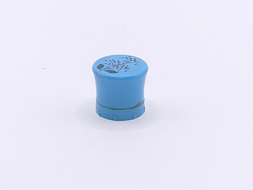 Parfum en crème concrète. Plastique bleu à décor floral.