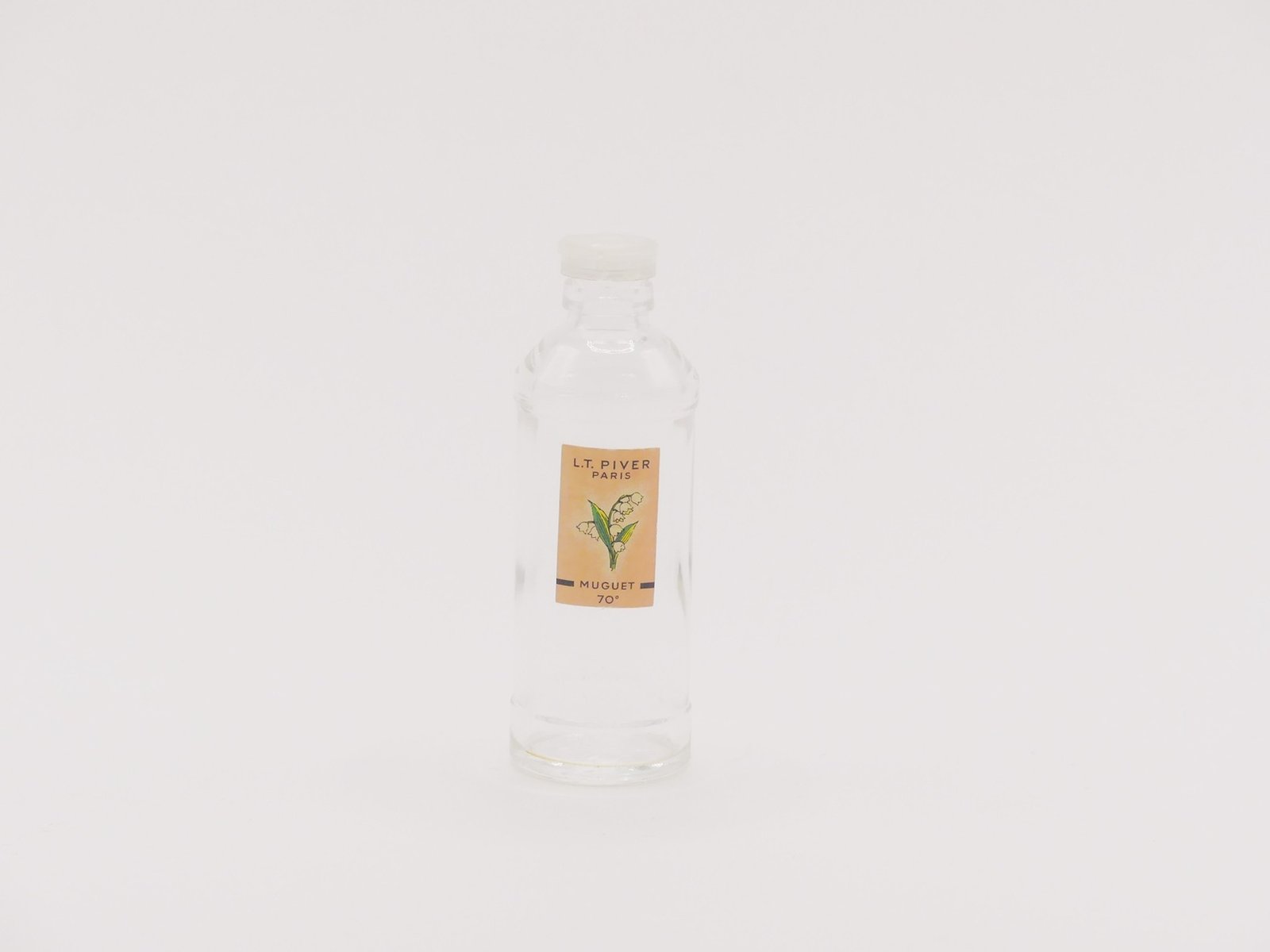 Flacon cylindrique fermé par capsule plastique transparent.